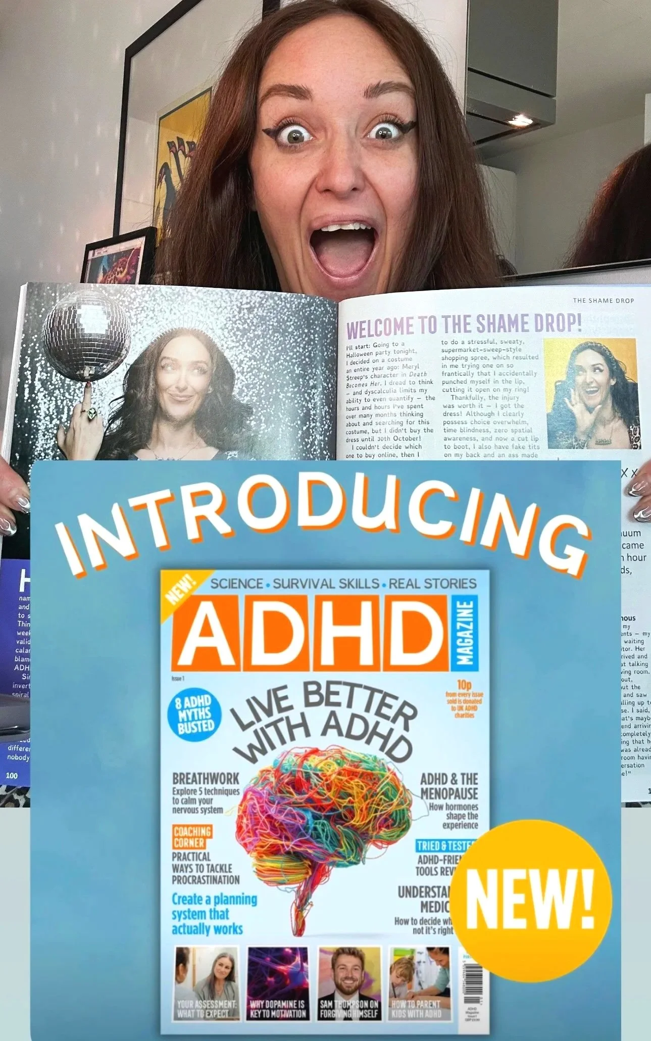 I was honoured to contribute to it and I am extremely excited to be continuing my column ‘The Shame Drop’ in the next edition. All of us at ADHDAF+ are very grateful to be receiving a donation of each copy sold.